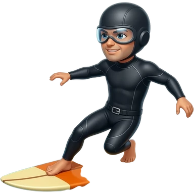 Man Surfer surfing with long blond hair, yellow t-shirt with black Nike logo in center of chest, black baggy sweatpants. On a yellow and white board emoji
