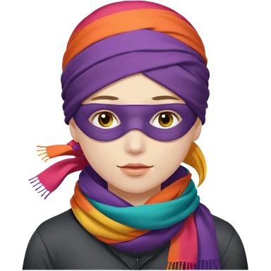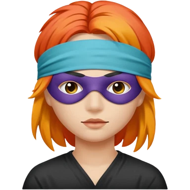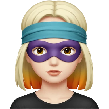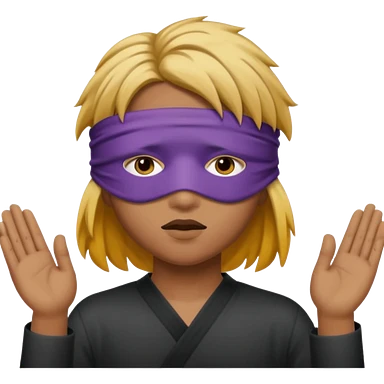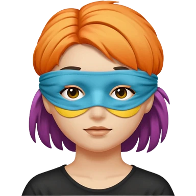 Blindfold person with different colors of hair. No trusting games with people blindfolded behind steering wheel emoji | AI Emoji Generator