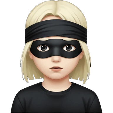 Emoji sitting cris cross wearing a white toga, the emoji is blindfolded with a white and green striped tie, and they are watermelon for a hat. The emoji should also have an uncomfortable look on his face (but the eyes are covered by the blind fold don’t forget) emoji