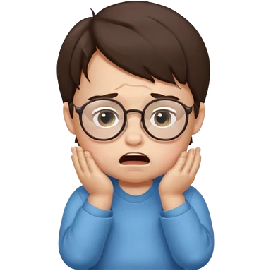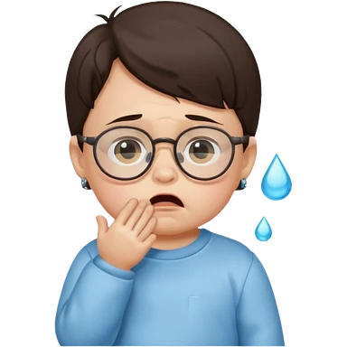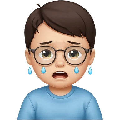 brunette baby boy crying with glasses emoji