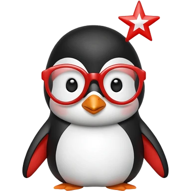 Pingüino color rojo con blanco y lentes en forma de estrella color celeste emoji