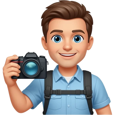 young white blogger with camera emoji