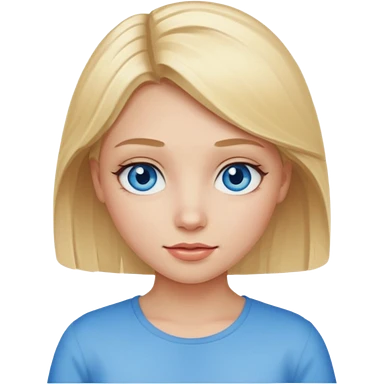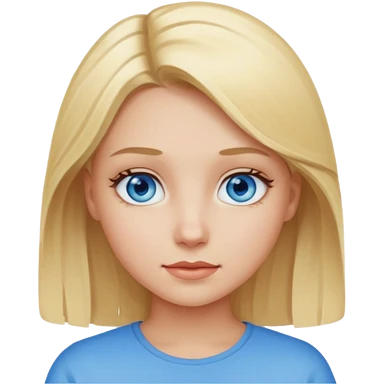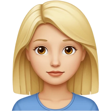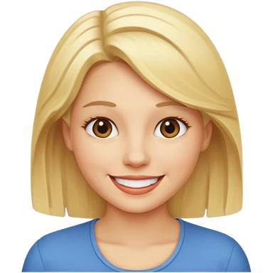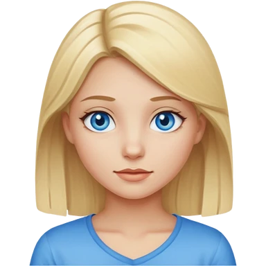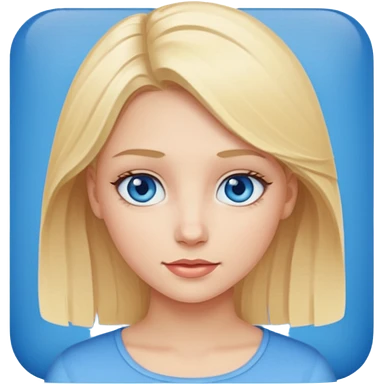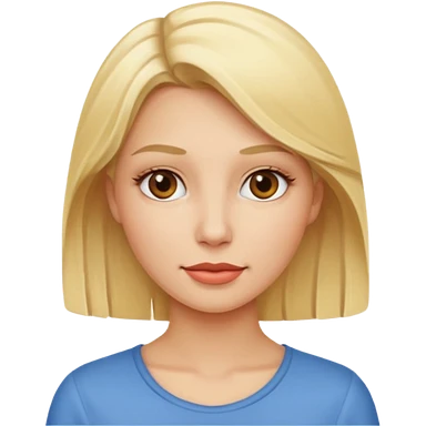 blonde long hair girl using macbook emoji. she has blue eyes and dark coffee shirt with Teal coloured accesory emoji