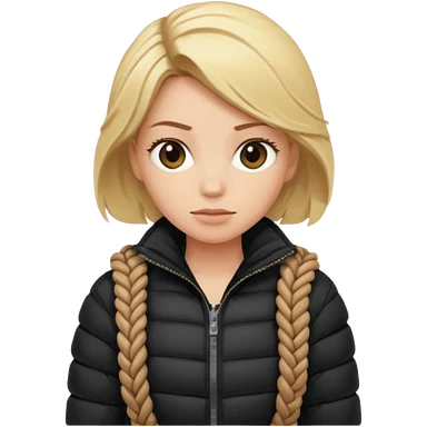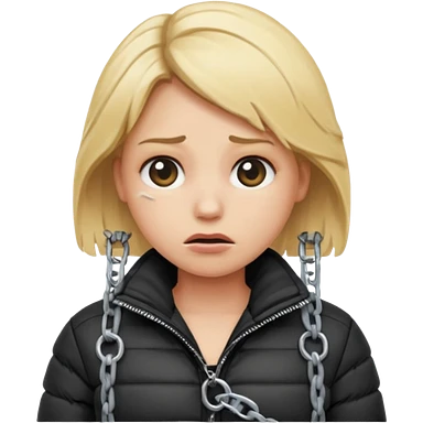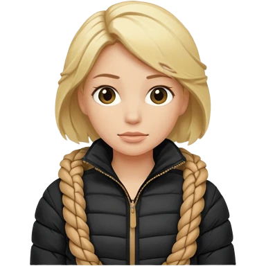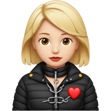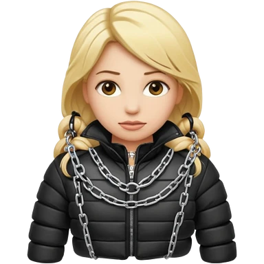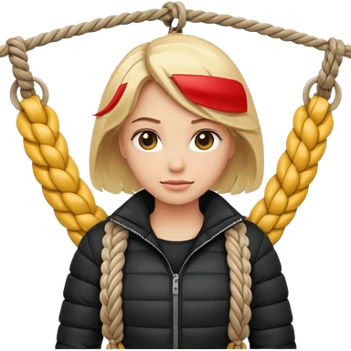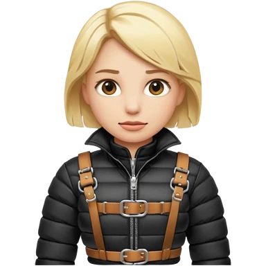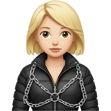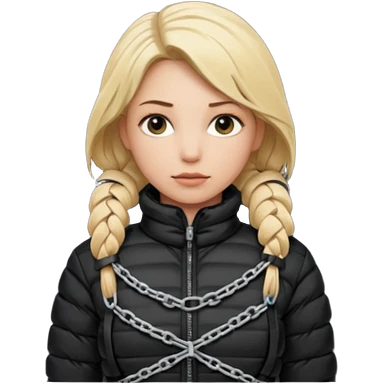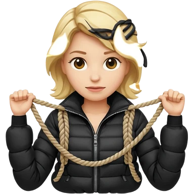 blond female emoji wearing a black down jacket, wraped in ropes emoji