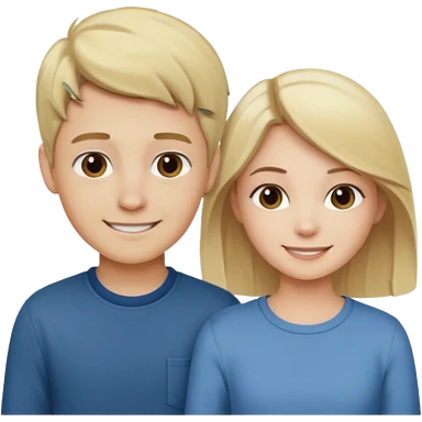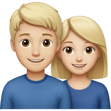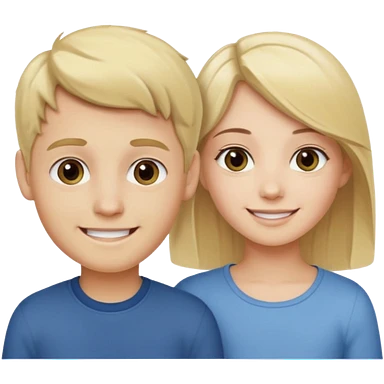 blonde blue eyed boy smiling with pale brunette green eyed girl emoji