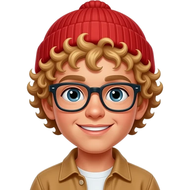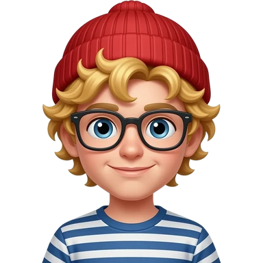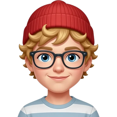 blond boy with red beanie and glassess emoji | AI Emoji Generator