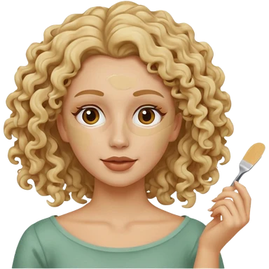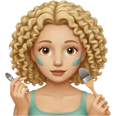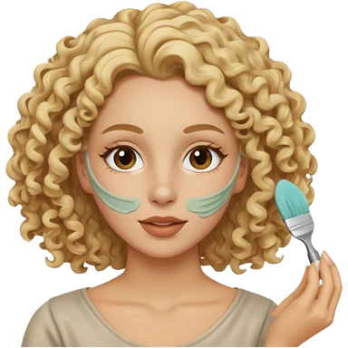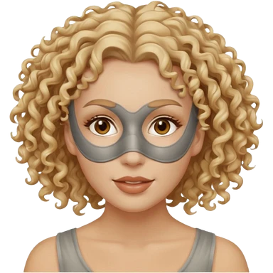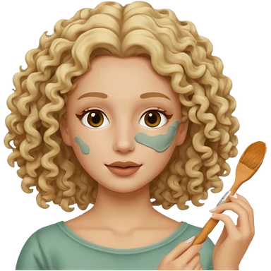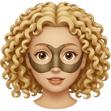 blond curly haired woman with full face clay mask emoji | AI Emoji Generator
