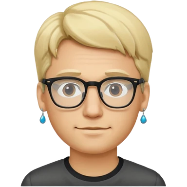 blond man wearing earrings, wearing glassess, with no beard emoji