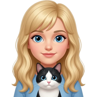 blond girl blue eye with black and white cat emoji