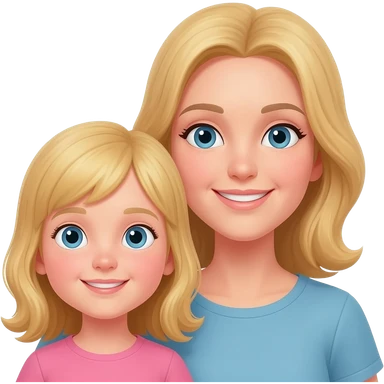 mum with straight long White hair and daughter with long curly brown and blonde hair hugging emoji