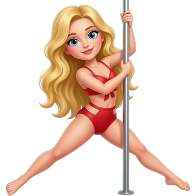 Gorgeous long blonde hair eye girl wearing red two piece costume practicing pole dancing emoji