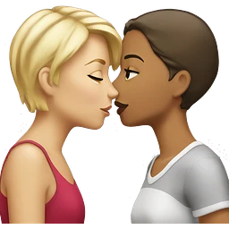Blond girl kissing a brunette guy emoji | AI Emoji Generator