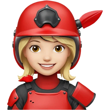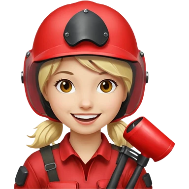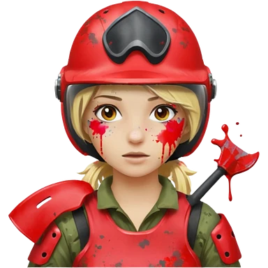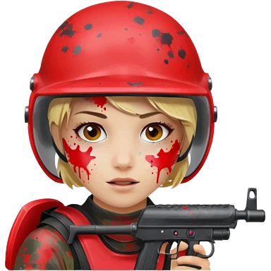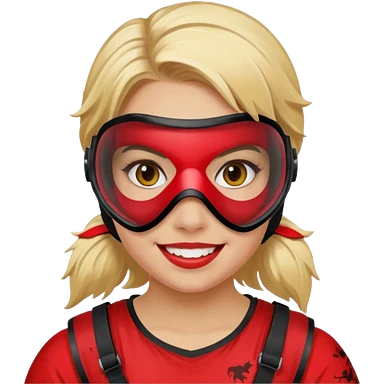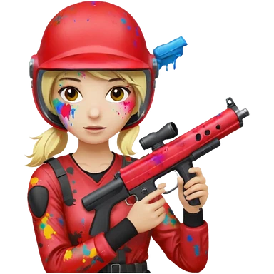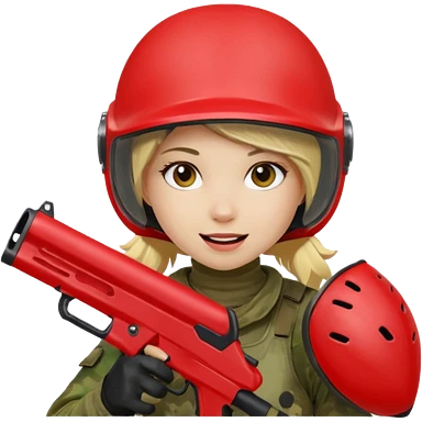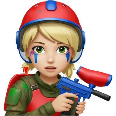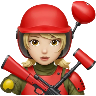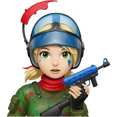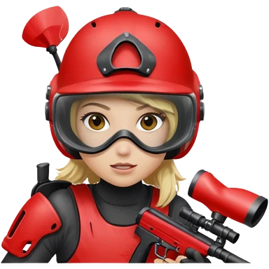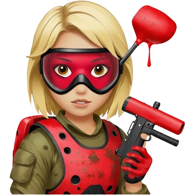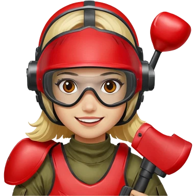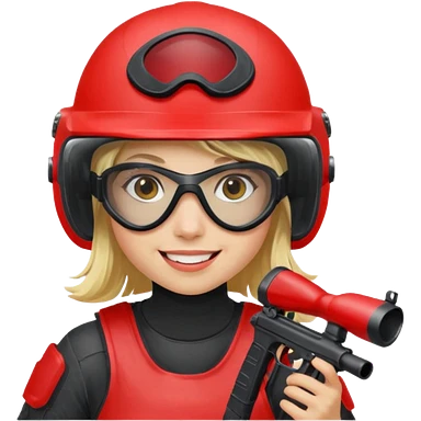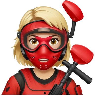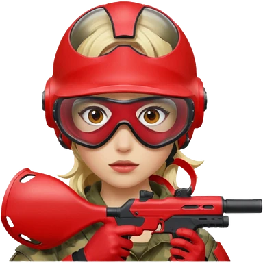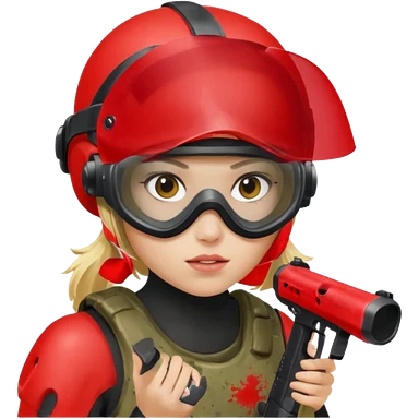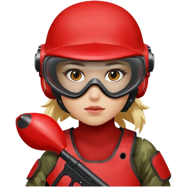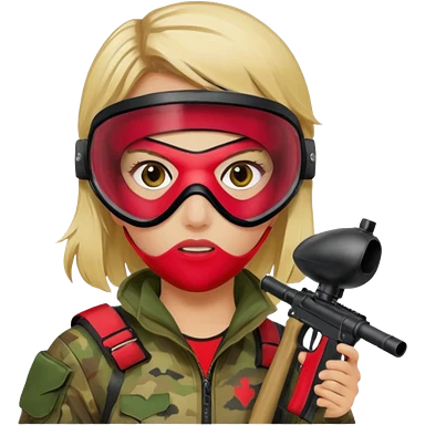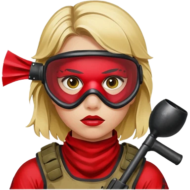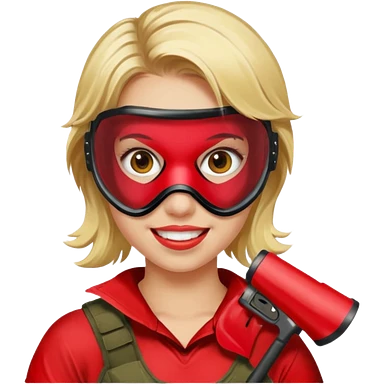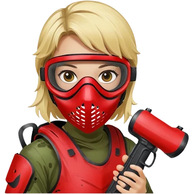 blond girl playing paintball with red paintball face gear emoji | AI Emoji Generator