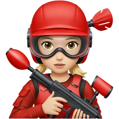 girl playing paintball with red paintball gear and only face emoji