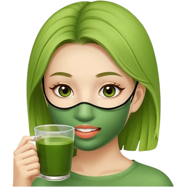 Blond girl wearing skincare mask drinking matcha emoji | AI Emoji Generator