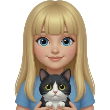 blue eye girl with long straight blond hair with black and white cat emoji