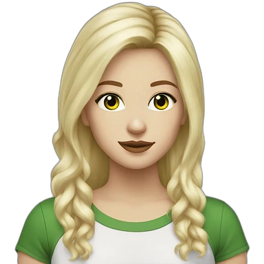 A blonde punk rocker woman with blue eyes with a thanksgiving turkey cat emoji
