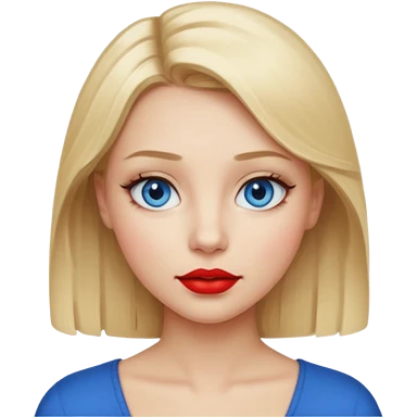 Realistic girl, blue eyes, red lipstick and fantastic blond hair emoji