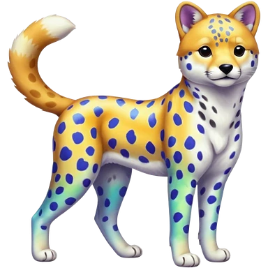 Colorful shiny iridescent Cheetah-Dingo-Snow-Leopard-Shiba-Inu-hybrid, full body emoji