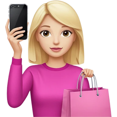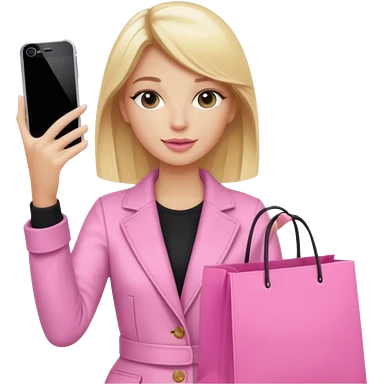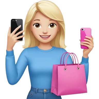 Blond influencer taking selfie with an iphone with one hand and a pink shopping bag in the other hand emoji | AI Emoji Generator