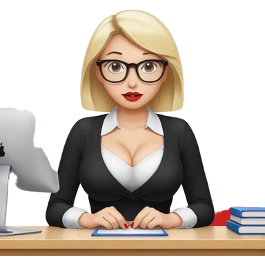 Blond lady.big boobs.glasses.short skirt.white shirt .cleavage .red lipstick .bending over desk emoji