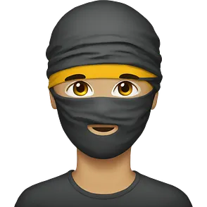Robber with a blindfold and a bag of money on his shoulder emoji