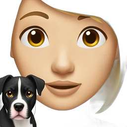 Blond lady with shoulder length bob haircut and a Pitbull dog emoji