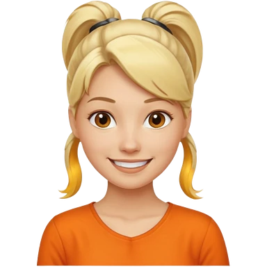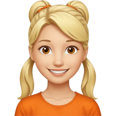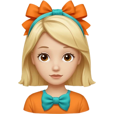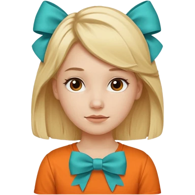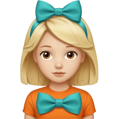 blond kid with unique face features and very curly hair kid girl happy and big glasess and big nose and very blue eyes and headband with freckles kind of nerd looking emoji