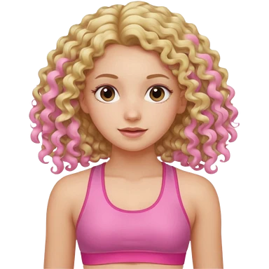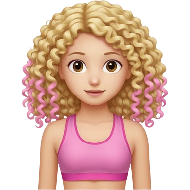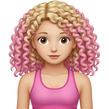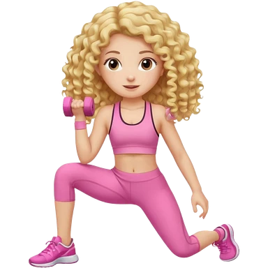 long hair curly blond haired girl DOING EXERCISE in a cute pink set emoji