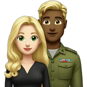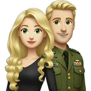 Military blond guy with green eyes blond long hair girl in black dress emoji
