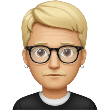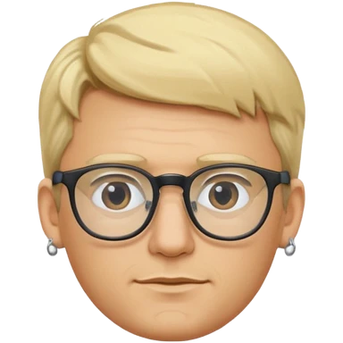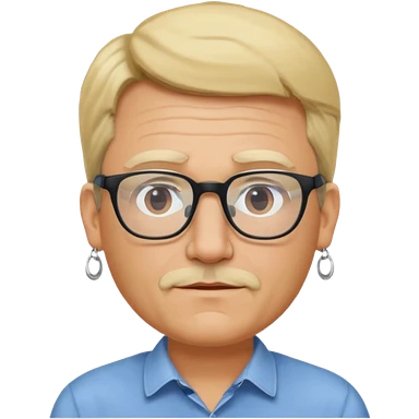 blond middle aged man wearing big earrings, wearing glassess, with no beard emoji | AI Emoji Generator