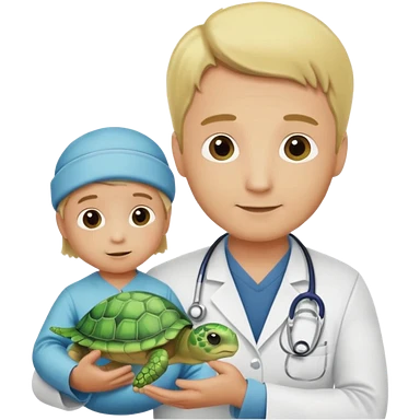 blonde man veterinarian with baby turtle emoji