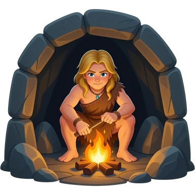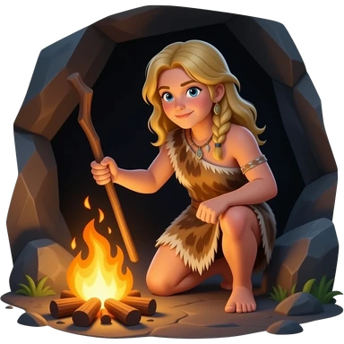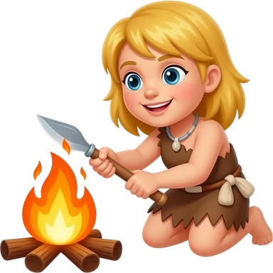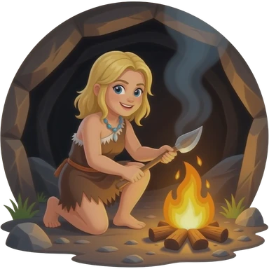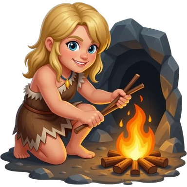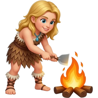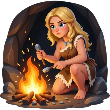 blonde cavewoman making fire emoji