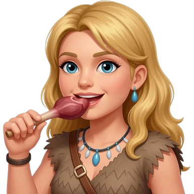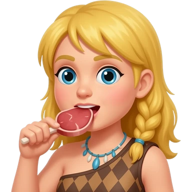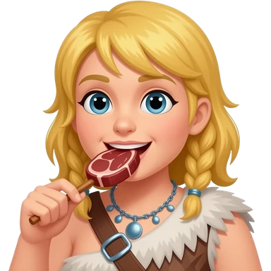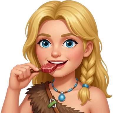 blonde cavewoman eating meat emoji