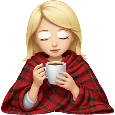 Blonde girl inside a blanket sipping coffee eyes closed emoji