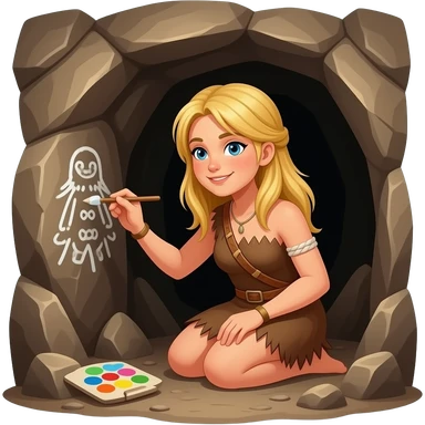 blonde cavewoman making cavepainting emoji