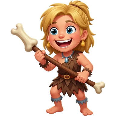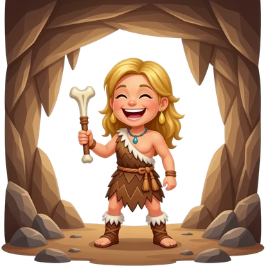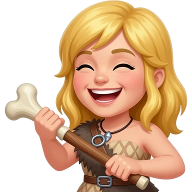 blonde cavewoman laughing with bone club emoji