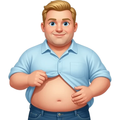 Blonde round obese man with shirt too small so the bottom of his belly hangs out emoji