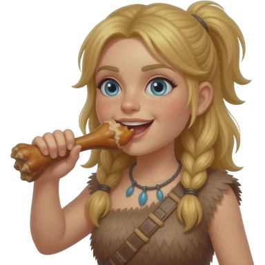 blonde cavewoman eating cartoon meat emoji