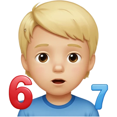 Blonde kid drooling with numbers 6 and 7 next to him emoji