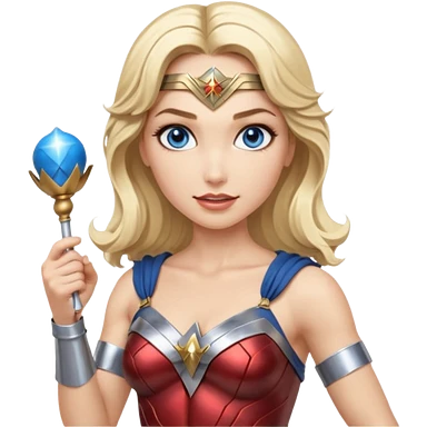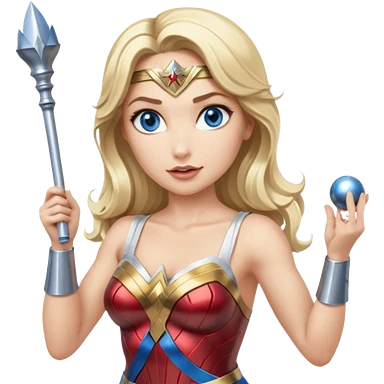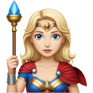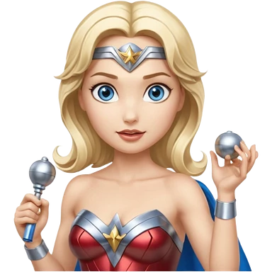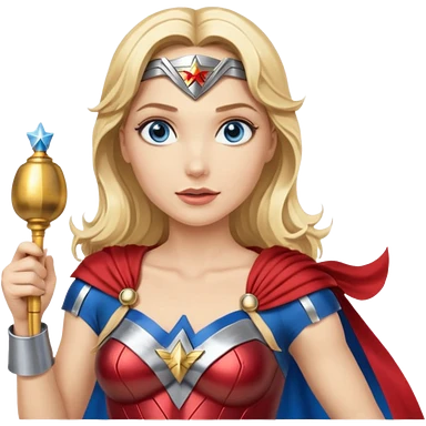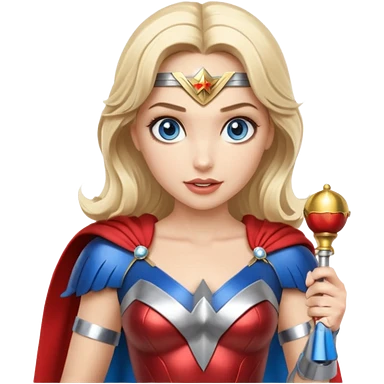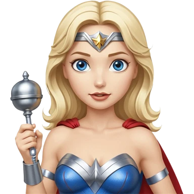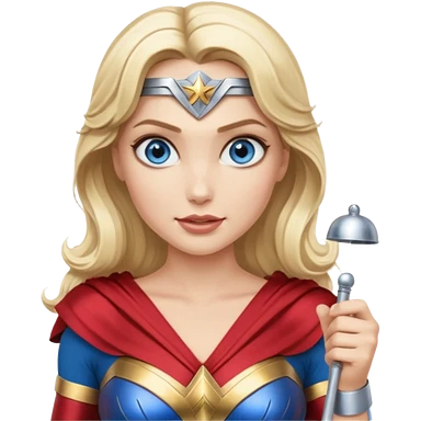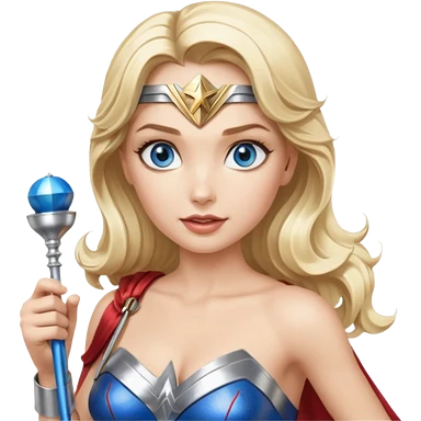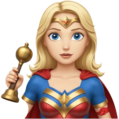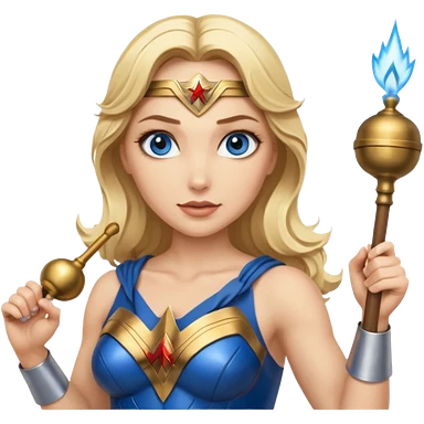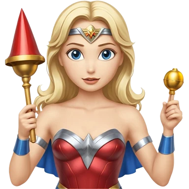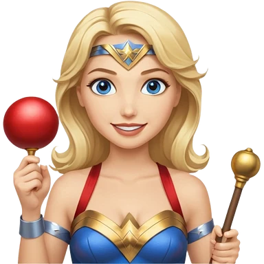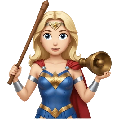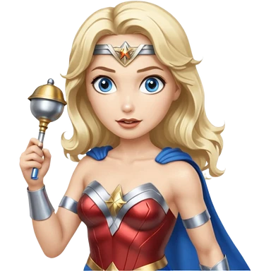 Blonde blue eyes Wonder Woman holding bell and short white baton emoji