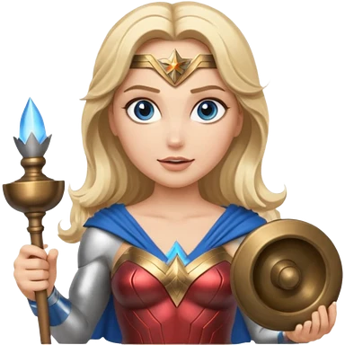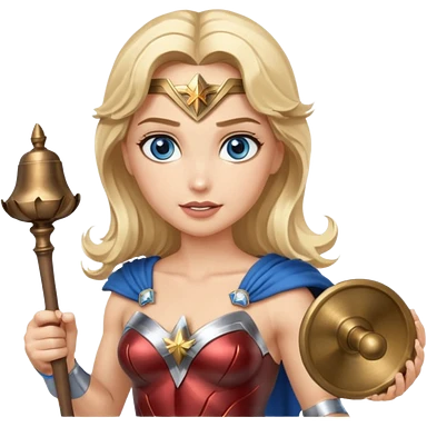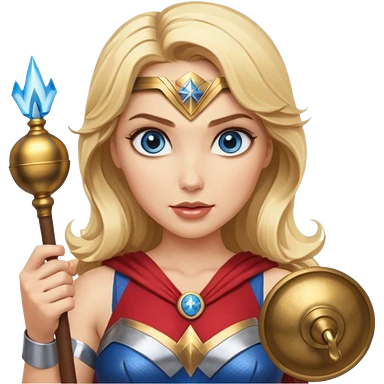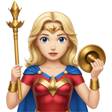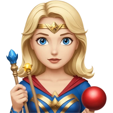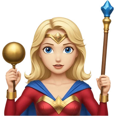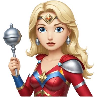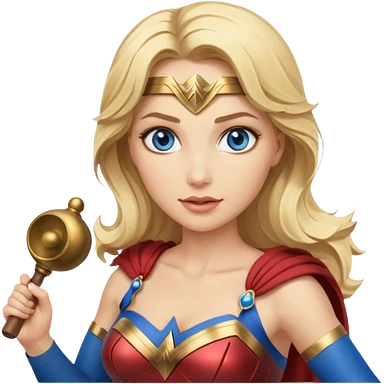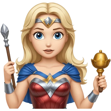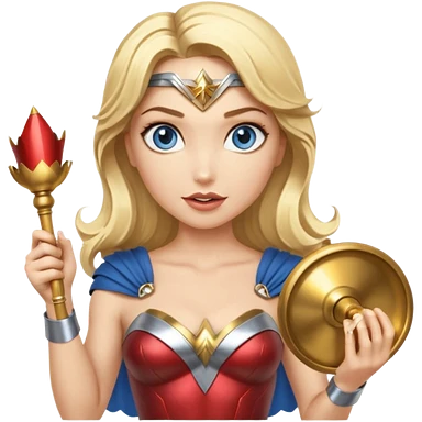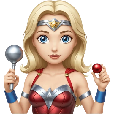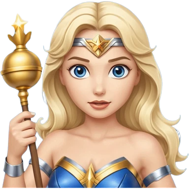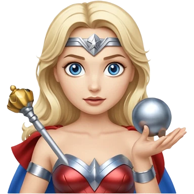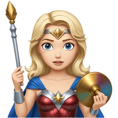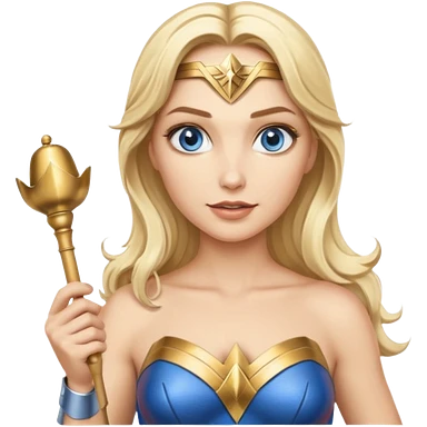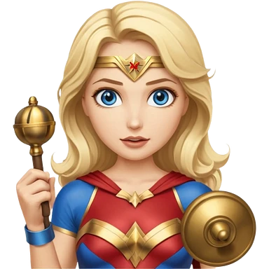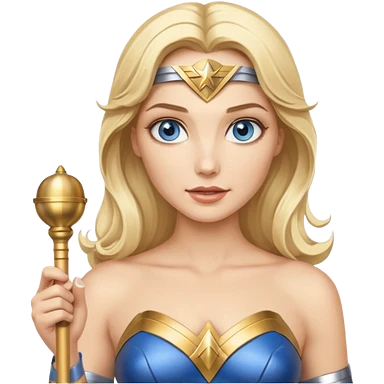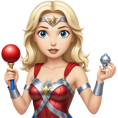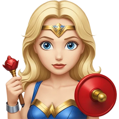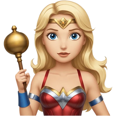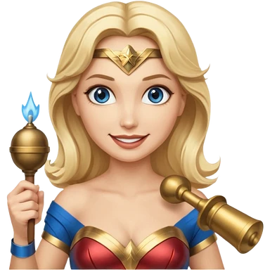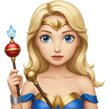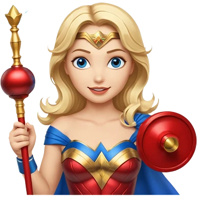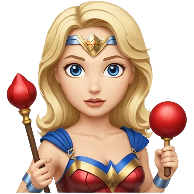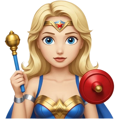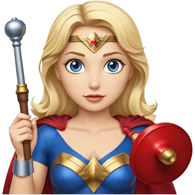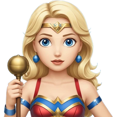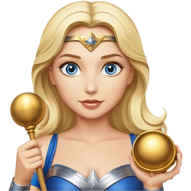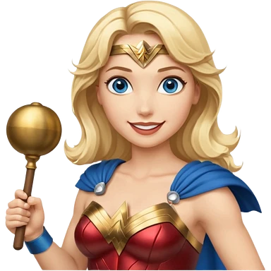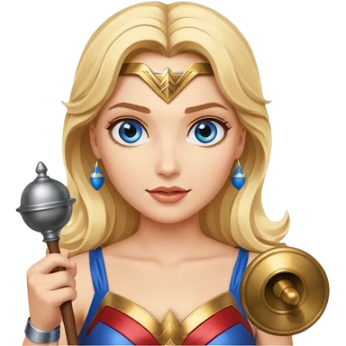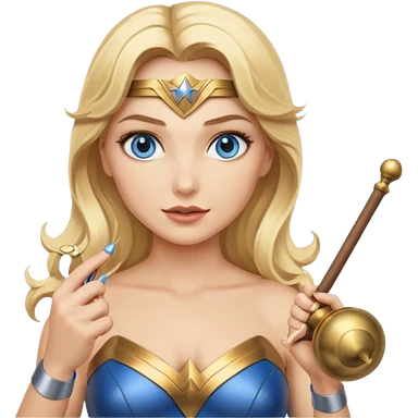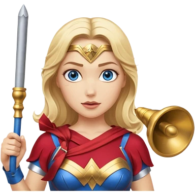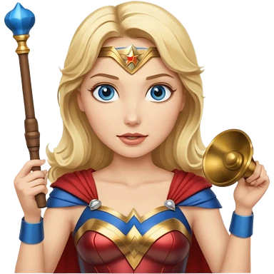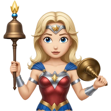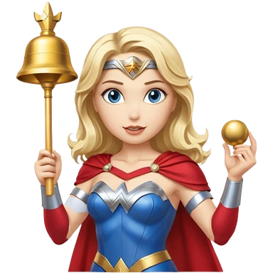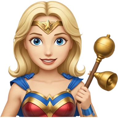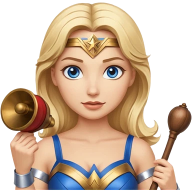 Blonde blue eyes Wonder Woman holding bell and baton emoji