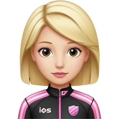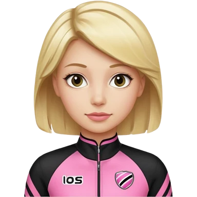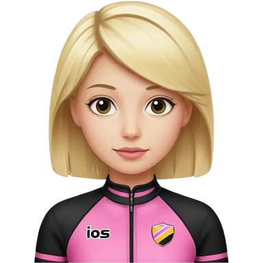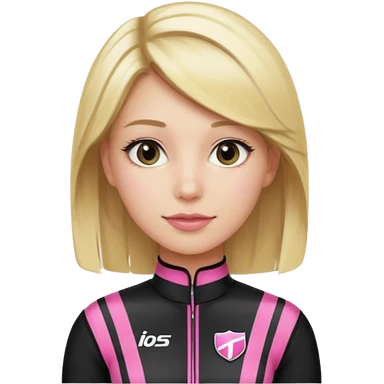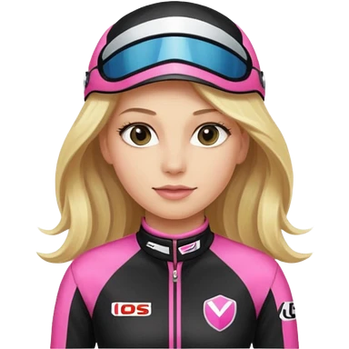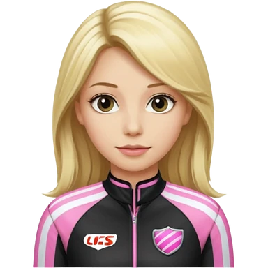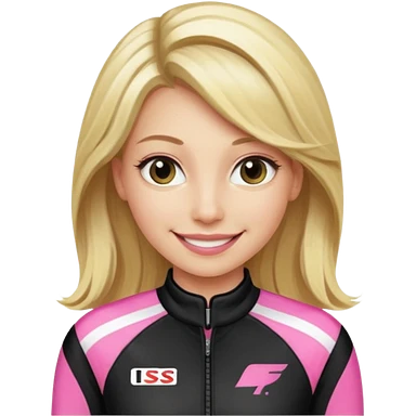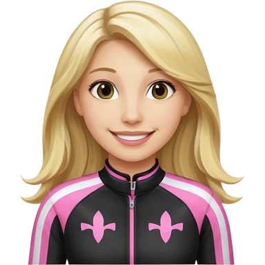 blonde woman with black racing outfit with pink strips emoji