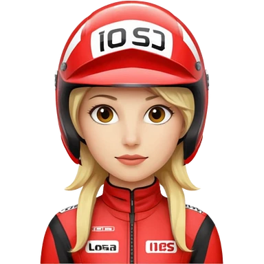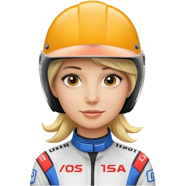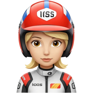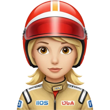 blonde woman with racing outfit emoji
