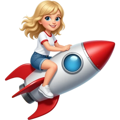 blonde girl riding a red rocket emoji