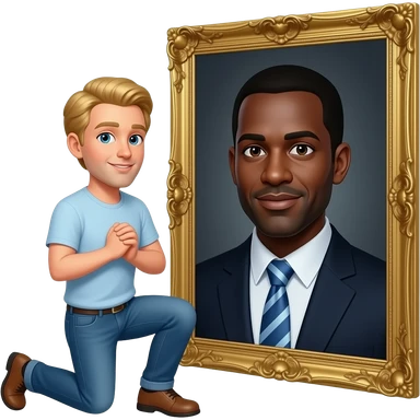 Blonde man kneeling in front of a dark man. emoji
