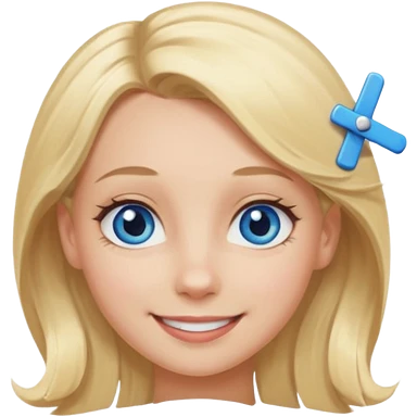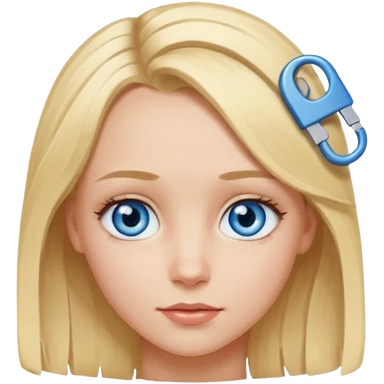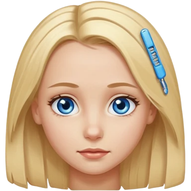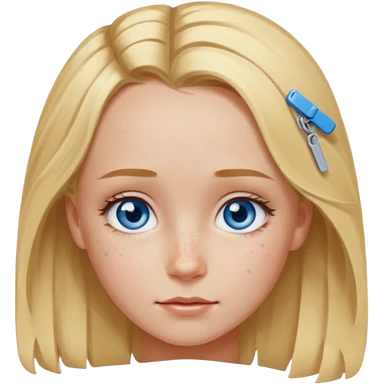 blonde girl, blue eyes with clips in hair and the biggest forehead ever emoji