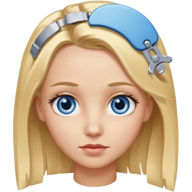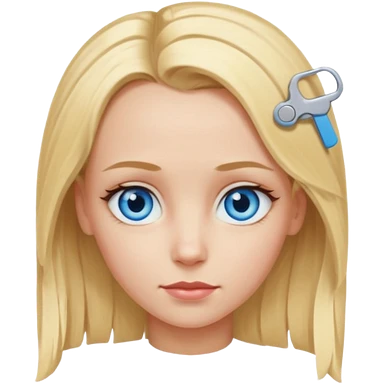 blonde girl, blue eyes with clips in hair and the forehead as big as megamind emoji