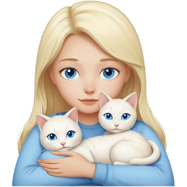 Blonde girl snuggling with white cat with blue eyes emoji