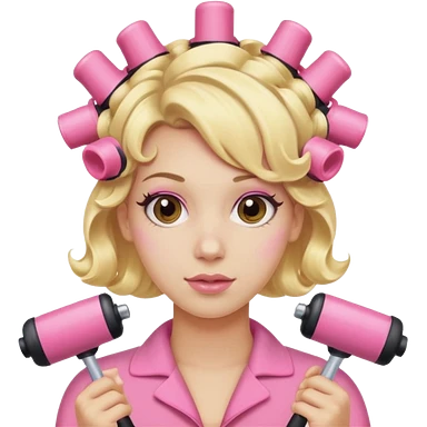 blonde hair with pink roller curlers in emoji